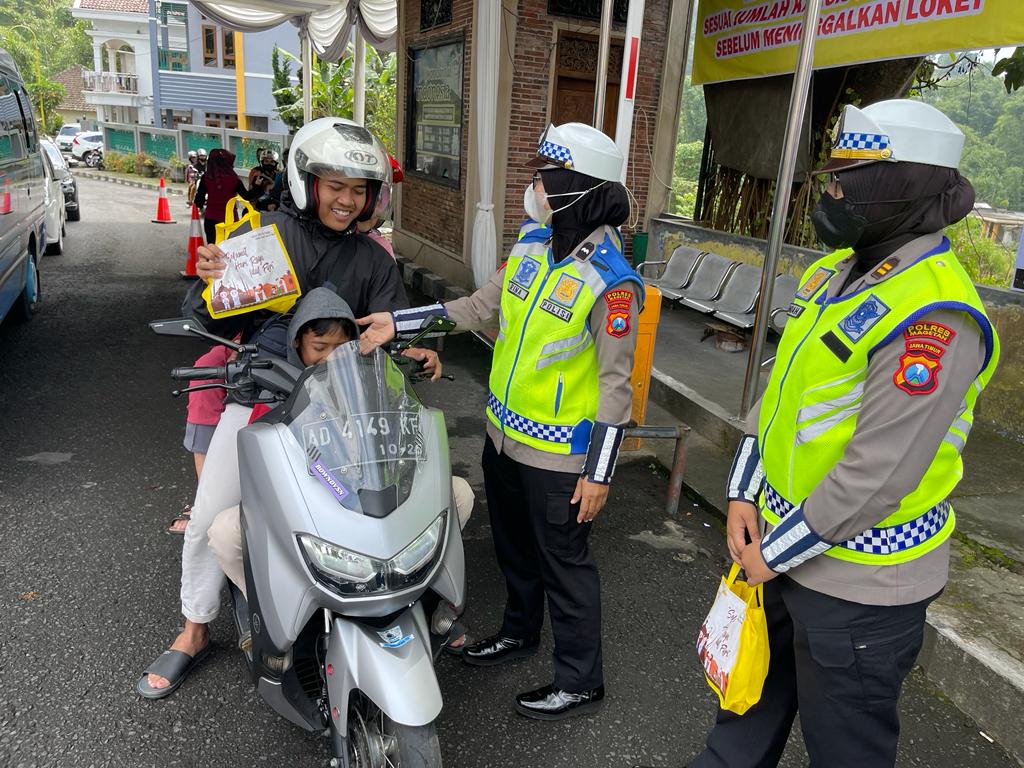 Magetan – Akuratmedianews.com Aksi humanis Srikandi Satlantas Polres Magetan turun kejalan ditengah terik panas deru campur debu, untuk menyapa para pengguna jalan yang melintas di jalur wisata menuju dan keluar dari area wisata telaga sarangan,.
