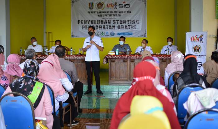 Hal itu disampaikan bupati saat menghadiri pengobatan gratis dan penyuluhan stunting yang digelar Persatuan Wartawan Indonesia (PWI) Tuban di Balai Desa Sumurgung, Kecamatan Tuban, Kabupaten Tuban, Jawa Timur Rabu (16/3/2022). Kegiatan tersebut masih sebagai rangkaian peringatan Hari Pers Nasional (HPN).