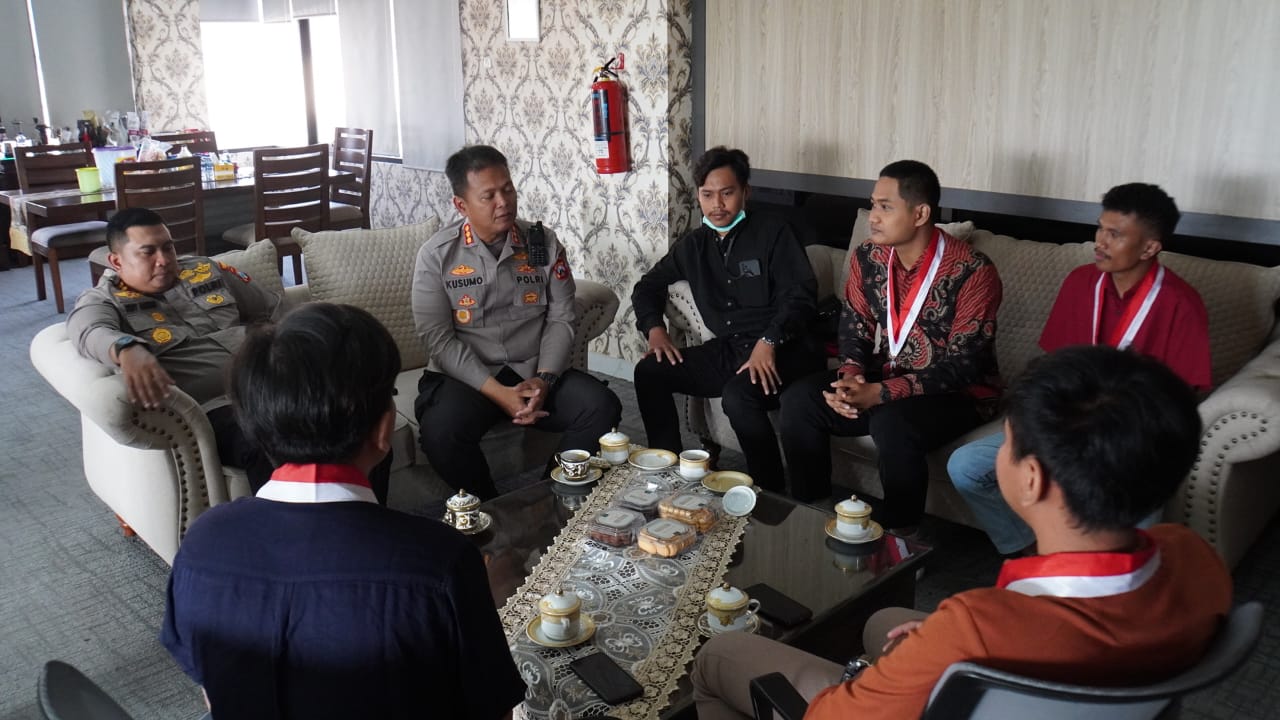 Didampingi Wakapolresta Sidoarjo AKBP Deny Agung Andriana, Kapolresta Sidoarjo Kombes Pol. Kusumo Wahyu Bintoro menyambut baik berlangsungnya dialog bersama mahasiswa dari GMNI Cabang Sidoarjo.