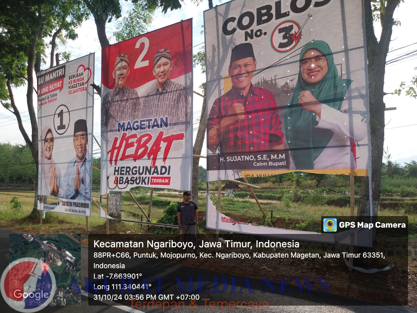 MAGETAN – Akuratmedianews.com Jelang Pemilihan Kepala Daerah (Pilkada) Kabupaten Magetan, aksi perusakan dan vandalisme terhadap baliho atau alat peraga kampanye (APK) pasangan calon Bupati dan wakil Bupati nomor urut 3 Sujatno Ida kembali terjadi.Kejadian ini menuai perhatian publik dan dianggap merusak suasana demokrasi menjelang pemilihan.