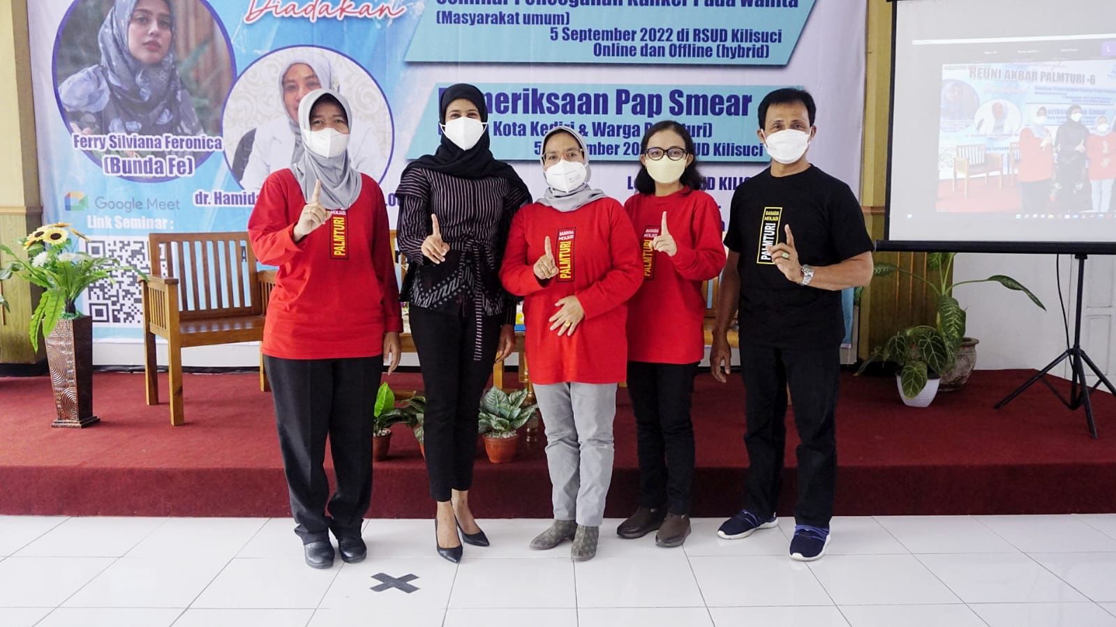 KEDIRI Akurat Media News – Ketua Yayasan Kanker Indonesia (YKI) Cabang Kota Kediri Ferry Silviana Abdullah Abu Bakar membuka seminar pencegahan kanker pada wanita dan pemeriksaan pap smear, Senin (5/9). Bertempat di RSUD Kilisuci Kota Kediri acara ini diselenggarakan oleh Paguyuban Alumni SMAN 1 Kediri (Palmturi) dalam rangka HUT SMAN 1 Kediri ke-76 dan reuni akbar ke-6. Seminar ini menghadirkan narasumber dr. Hamidah Tri Handajani, Sp.OG dan diikuti oleh masyarakat secara daring dan luring.