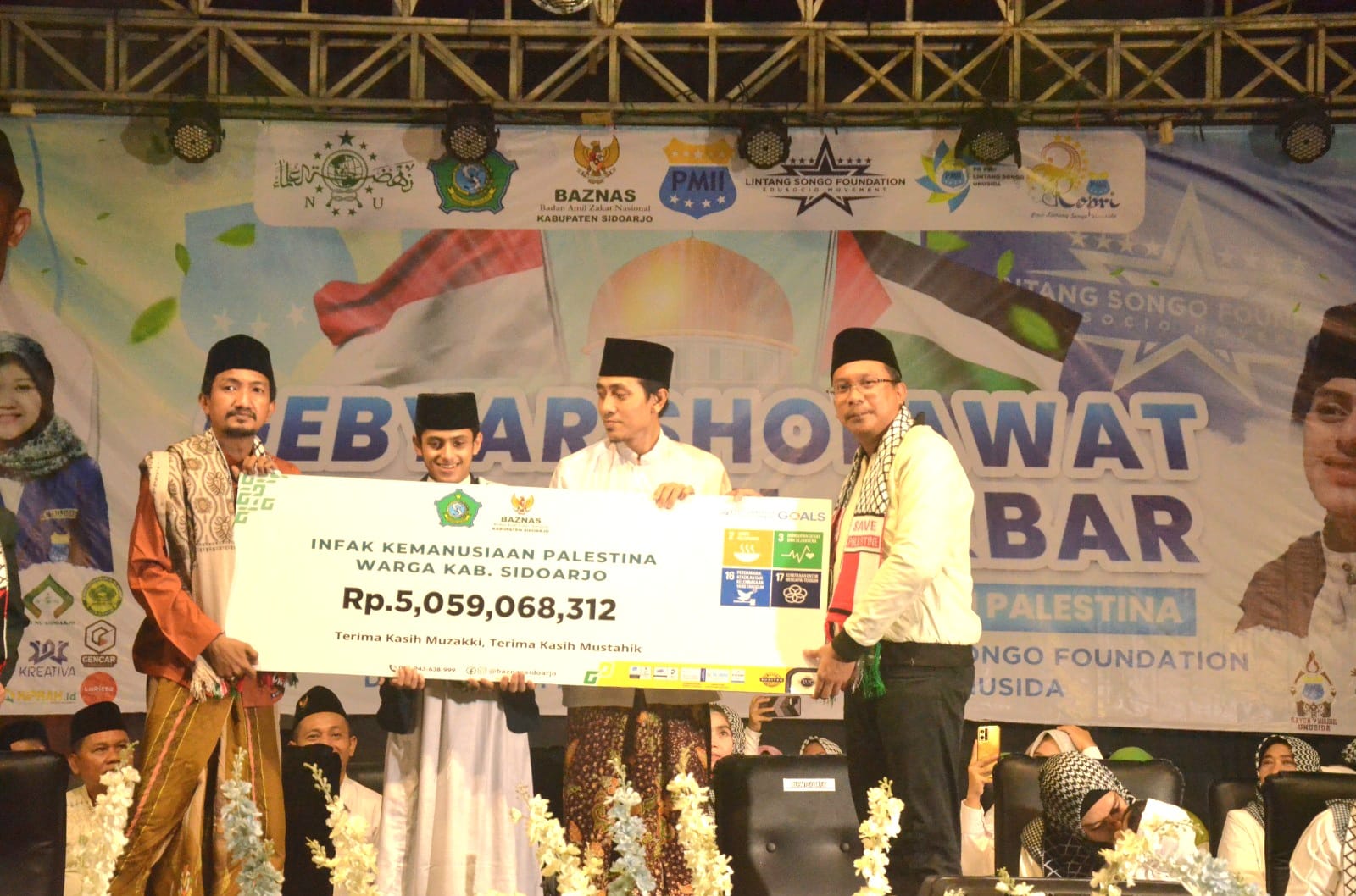 Gebyar Sholawat dan Tahlil Akbar bertajuk ‘Langitkan Doa untuk Saudara Kita Di Palestina’ yang berlangsung khidmat tersebut diprakarsai oleh Pemerintahan Kabupaten Sidoarjo, Baznas Kabupaten Sidoarjo, PCNU Sidoarjo dan Lintang Songo Foundation.