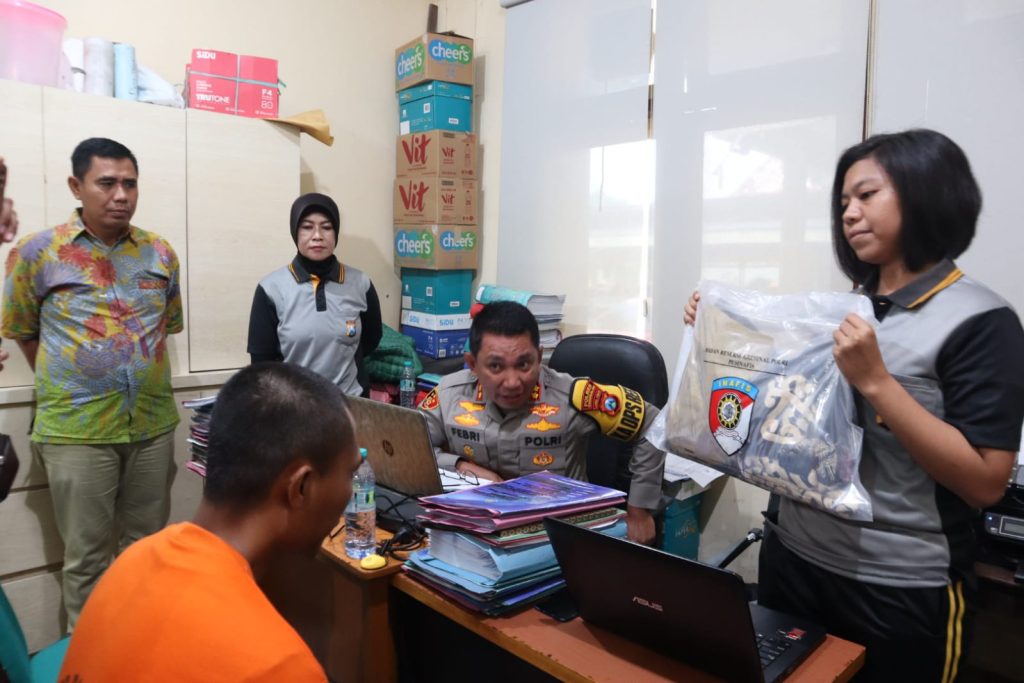 Barang bukti diamankan berupa sejumlah pakaian. Pelaku akan dikenakan tindak pidana persetubuhan terhadap anak di bawah umur, sebagaimana dimaksud dalam 81 Ayat (2) Undang-Undang Republik Indonesia Nomor 17 Tahun 2016 tentang Penetapan Perpu No.1 Tahun 2016 tentang Perubahan Kedua atas Undang-Undang Republik Indonesia Nomor 23 tahun 2002 tentang Perlindungan Anak menjadi Undang-Undang Jo Pasal 76D Undang-Undang Republik Indonesia Nomor 35 Tahun 2014 tentang Perubahan atas Undang-Undang Republik Indonesia Nomor 23 Tahun 2002 tentang Perlindungan Anak dengan ancaman hukuman maksimal 15 tahun penjara.