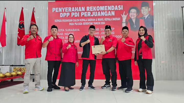Hal ini disampaikan Bendahara DPC H.Rita Haryati saat mendampingi Sujatno bersama sekretaris DPC Suyatno di kantor DPD PDIP Surabaya. “Surat tugas kepada bacakada itu menjadi tahapan awal di internal partai sebelum DPP mengeluarkan rekomendasi bakal pasangan calon yang diusung PDI Perjuangan di Pilkada 2024,” terang Rita Haryati.