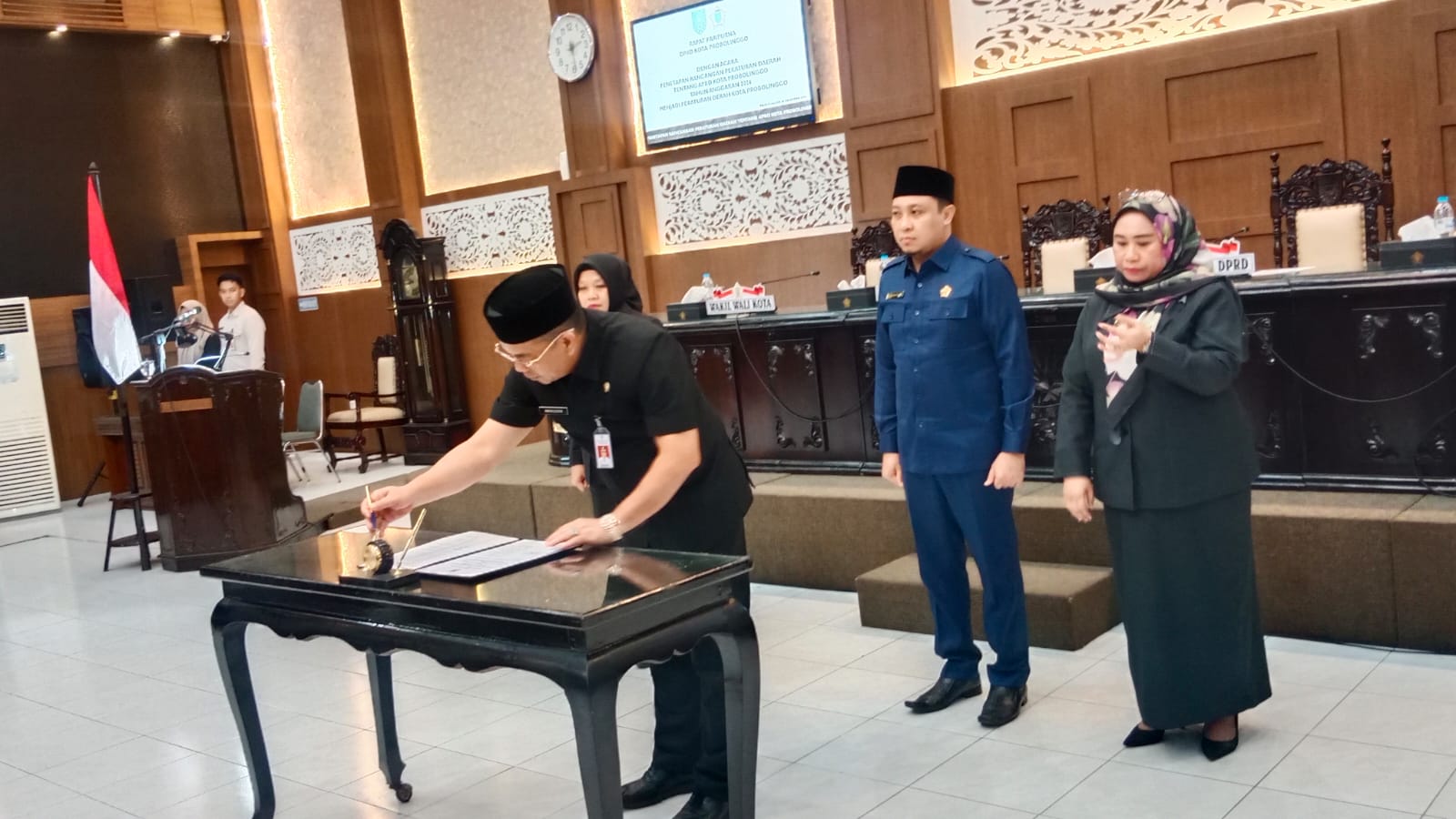 Rapat paripurna berlangsung di ruang sidang DPRD Kota Probolinggo dan dihadiri langsung oleh Wali Kota Probolinggo dr. Aminuddin bersama Wakil Wali Kota Ina Dwi Lestari. Turut hadir pula pimpinan dan anggota DPRD Kota Probolinggo, unsur Forum Koordinasi Pimpinan Daerah (Forkopimda), serta jajaran Organisasi Perangkat Daerah (OPD) di lingkungan Pemerintah Kota Probolinggo.
