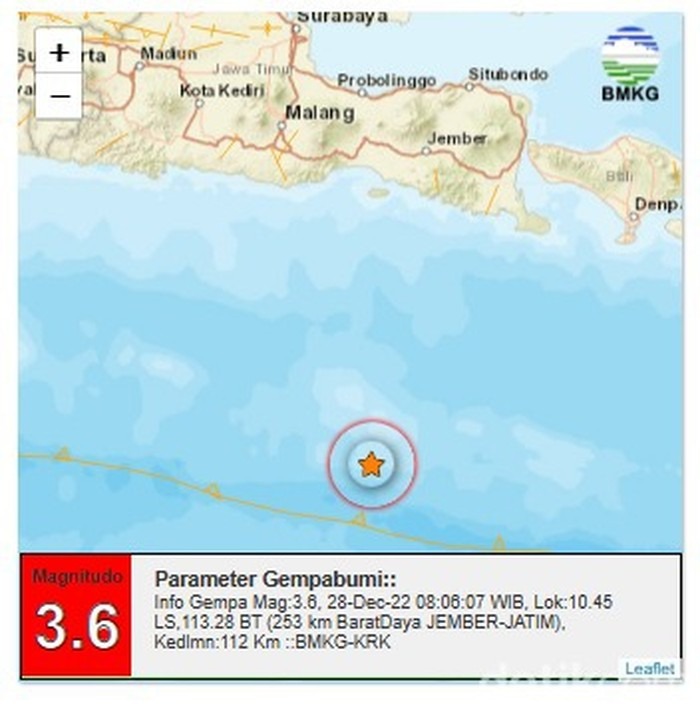 Jember (akuratmedianews.com) – Badan Penanggulangan Bencana Daerah (BPBD) Kabupaten Jember menyatakan belum menerima informasi tentang dampak gempa yang terjadi duakali dibagian barat daya Jember.