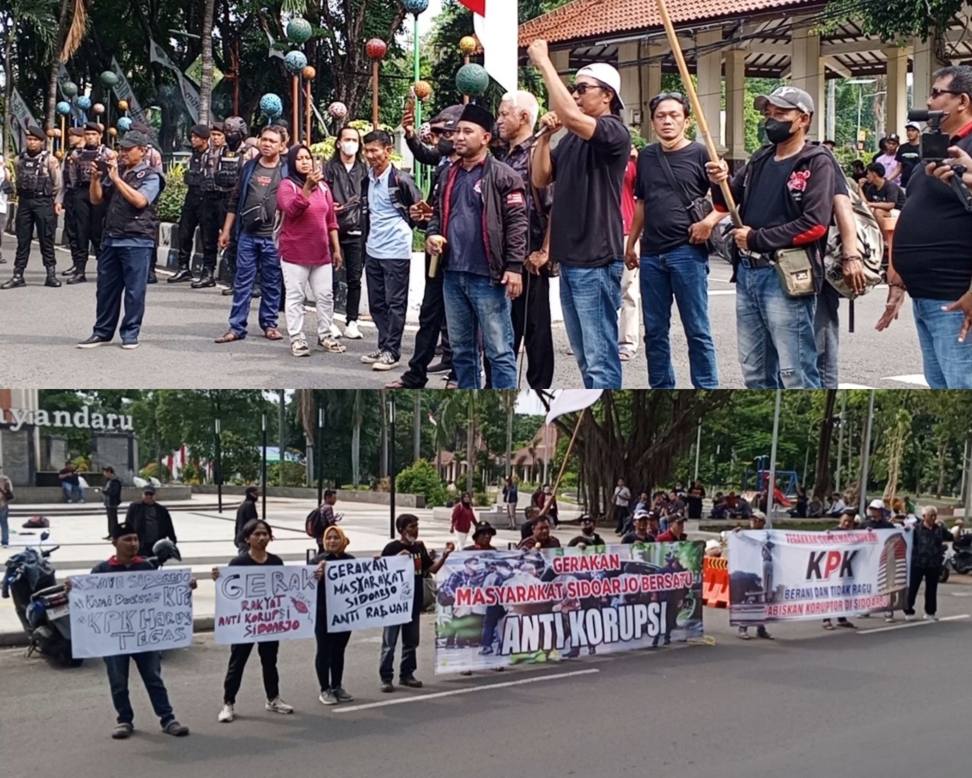 AKURATMEDIANEWS,Sidoarjo – Masyarakat Sidoarjo Bersatu mendukung upaya Komisi Pemberantasan Korupsi (KPK) di Kabupaten Sidoarjo. KPK didesak untuk menuntaskan penyidikan perkara pemotongan insentif pajak dan retribusi di BPPD Sidoarjo. Seorang tersangka telah ditetapkan.
