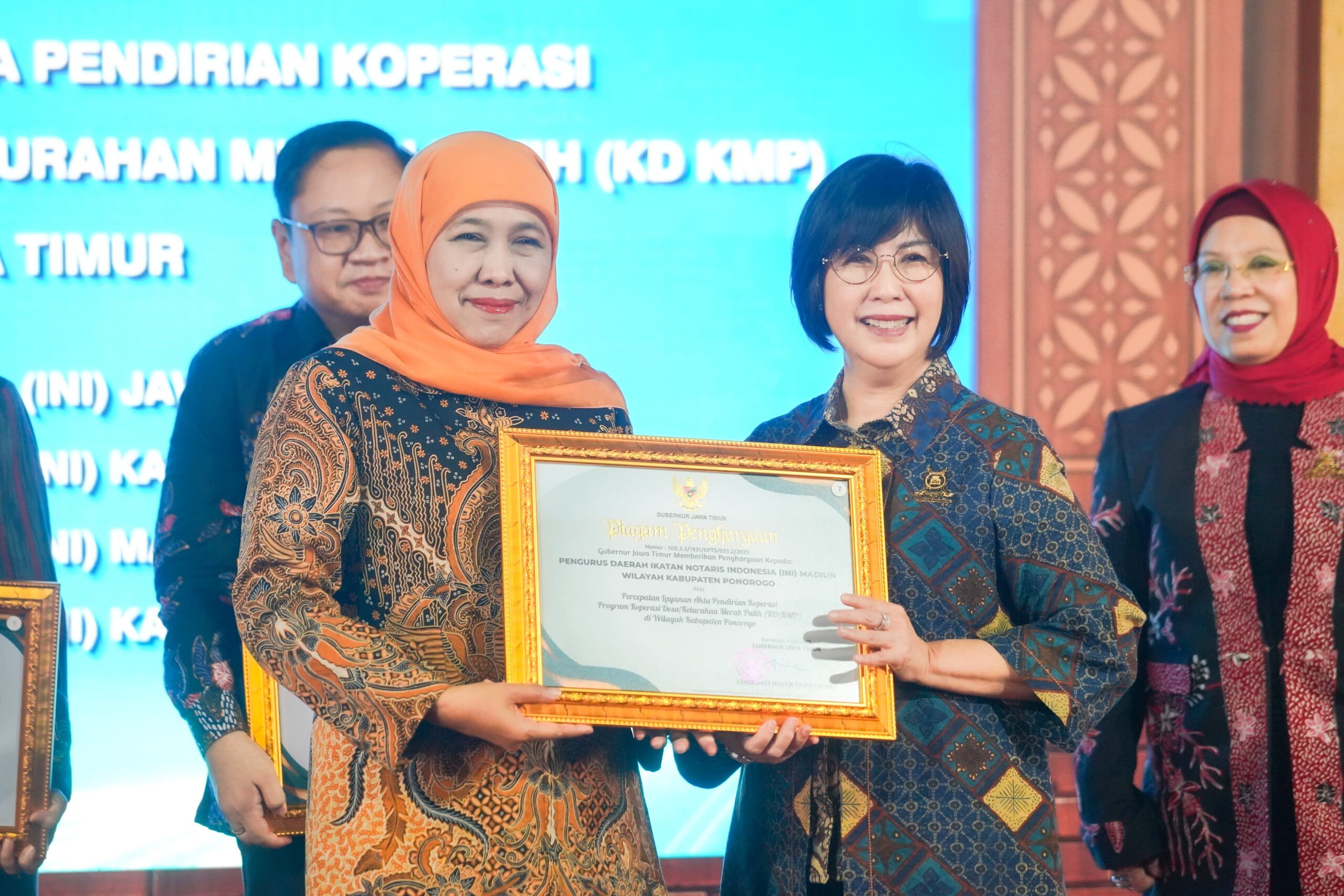 Tak lupa, orang nomor satu di Jatim ini mengapresiasi kerja keras semua pihak dalam mewujudkan capaian 100 persen pembentukan Koperasi Desa/Kelurahan Merah Putih, terutama peran Kanwil Kementrian Hukum (Kemenkum) bersama para notaris dalam mempercepat proses perizinannya.