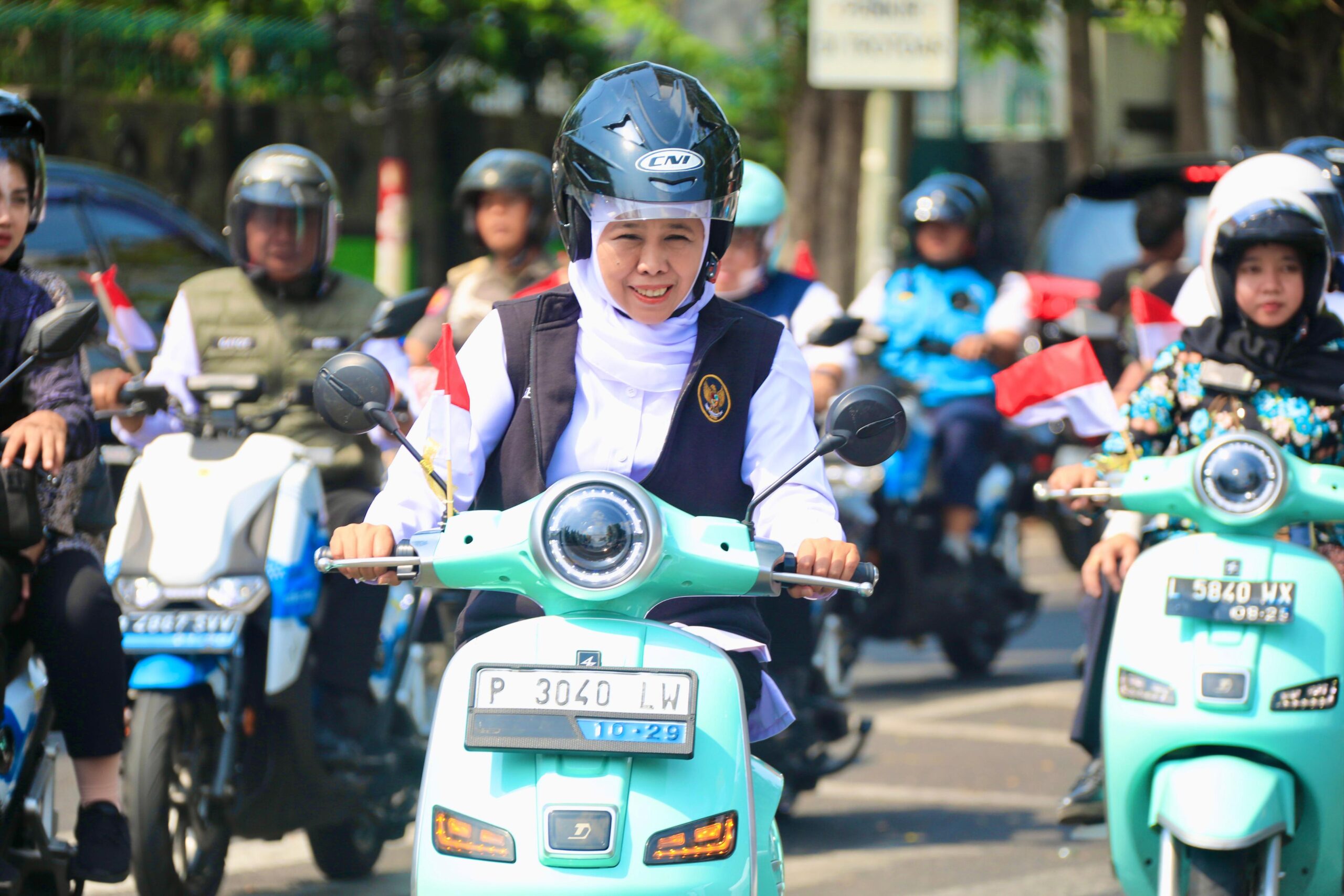 Gubernur Khofifah Kendarai Motor Listrik Pimpin Langsung Penyerahan Tali Asih untuk Perintis hingga Keluarga Pahlawan Nasional
