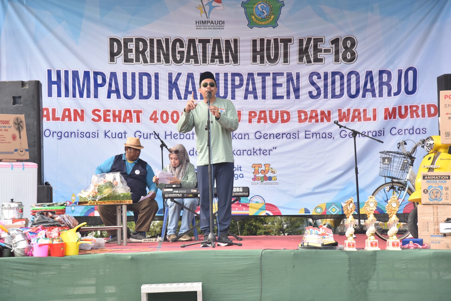 AKURATMEDIANEWS,SIDOARJO – Himpaudi (Himpunan Pendidik dan Tenaga Kependidikan Anak Usia Dini Indonesia) menginjak usianya ke 18 tahun 2023. Himpaudi Kabupaten Sidoarjo merayakannya dengan menggelar jalan sehat yang diikuti 4 ribu guru PAUDĀ dan wali murid. Pagi tadi jalan sehat berhadiah tersebut diberangkatkan Bupati Sidoarjo H. Ahmad Muhdlor S.IP di depan paseban Alun-alun Sidoarjo, Sabtu, (7/10/2023).
