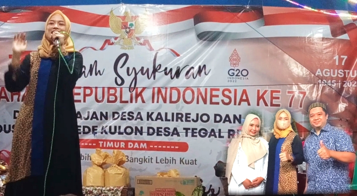Dirinya atas nama kepala desa dan pemerintah Desa Kalirejo menyampaikan rasa terimakasihnya kepada warga masyarakat dan juga kepada Ning Ayu Nofita Rahmawati, SE. atas partisipasi dan kesuksesan acara tasyakuran HUT Kemerdekaan RI ke-77 ini.
