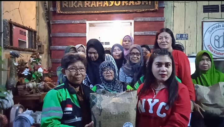 Dalam pembagian bingkisan lebaran itu dirumah budaya Rika Rahayu Rasmi langsung diserahkan oleh Rika Rahayu secara bergantian ke anggota Ojol maupun komunitas kebudayaan, pembagian bingkisan tersebut disaksikan oleh tokoh adat dan budayawan.