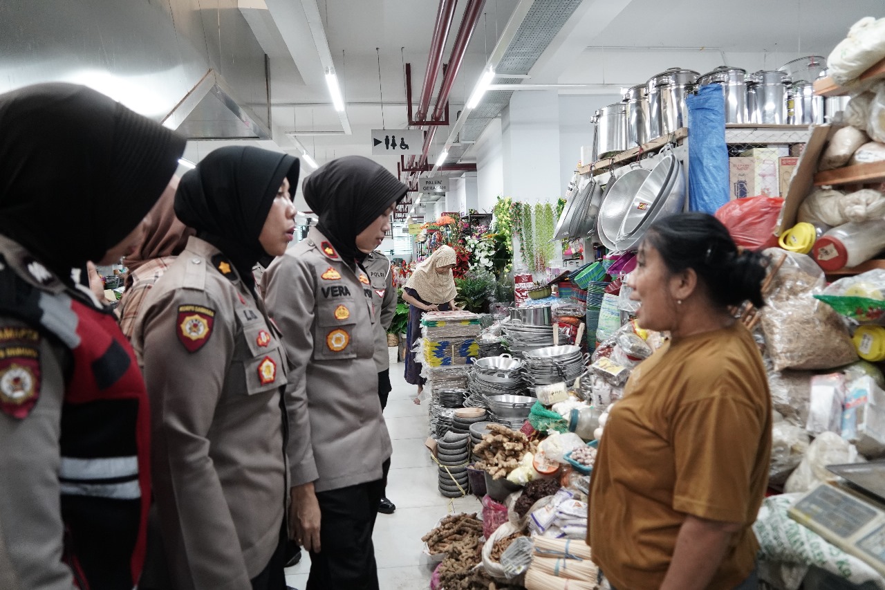 PONOROGO- Akuratmedianews.com Wakapolres Ponorogo, Kompol Verawaty Thaib, S.I.K., didampingi Kompol Lilik Sulastri, S.H, Kabaglog serta Anggota Polwan Polres Ponorogo mengunjungi Pasar Legi, Kamis (30/11/2023).