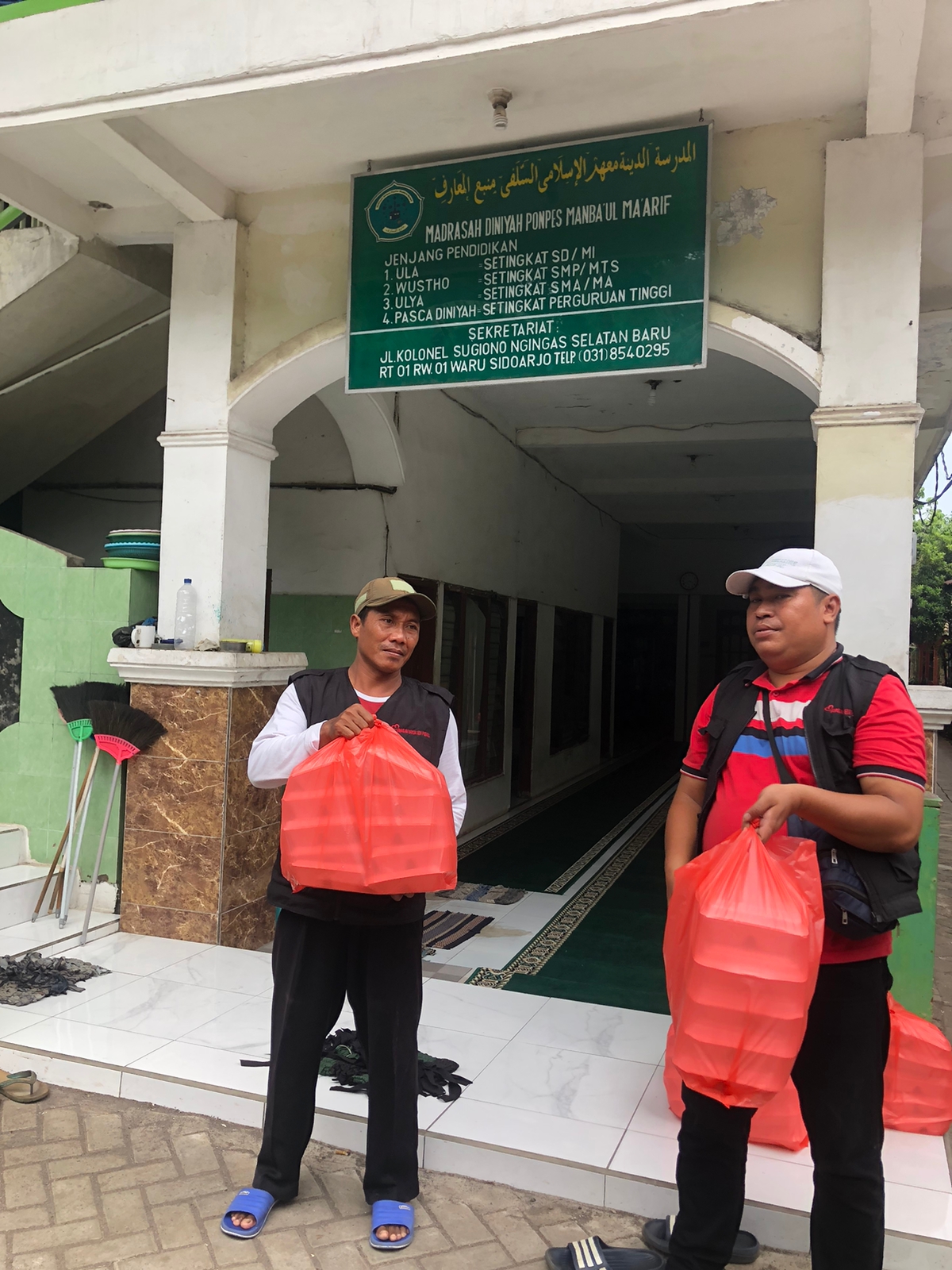 Jumat Berkah,Yayasan Yayuk Edi Peduli Bagikan Nasi Kotak Di Masjid Mambaul Ma’arif Desa Ngingas Waru