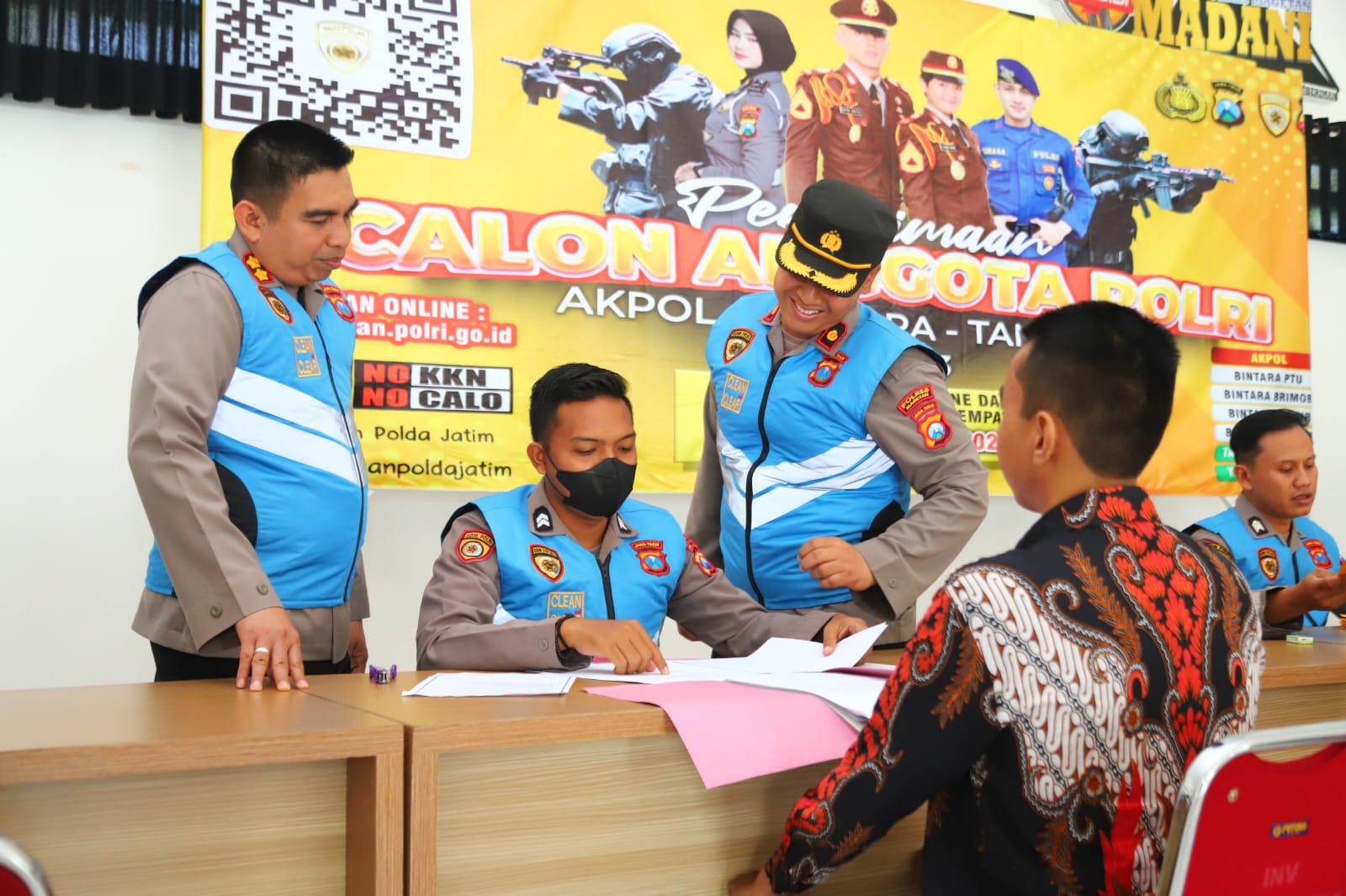 Kapolres mengatakan kepada peserta dan panitia serta pengawas dalam penerimaan anggota Polri jika pihaknya memegang teguh prinsip BETAH yaitu bersih, transparan, akuntabel, humanis serta clear & clean, bebas KKN, sekaligus melakukan pengawasan langsung terhadap kegiatan.