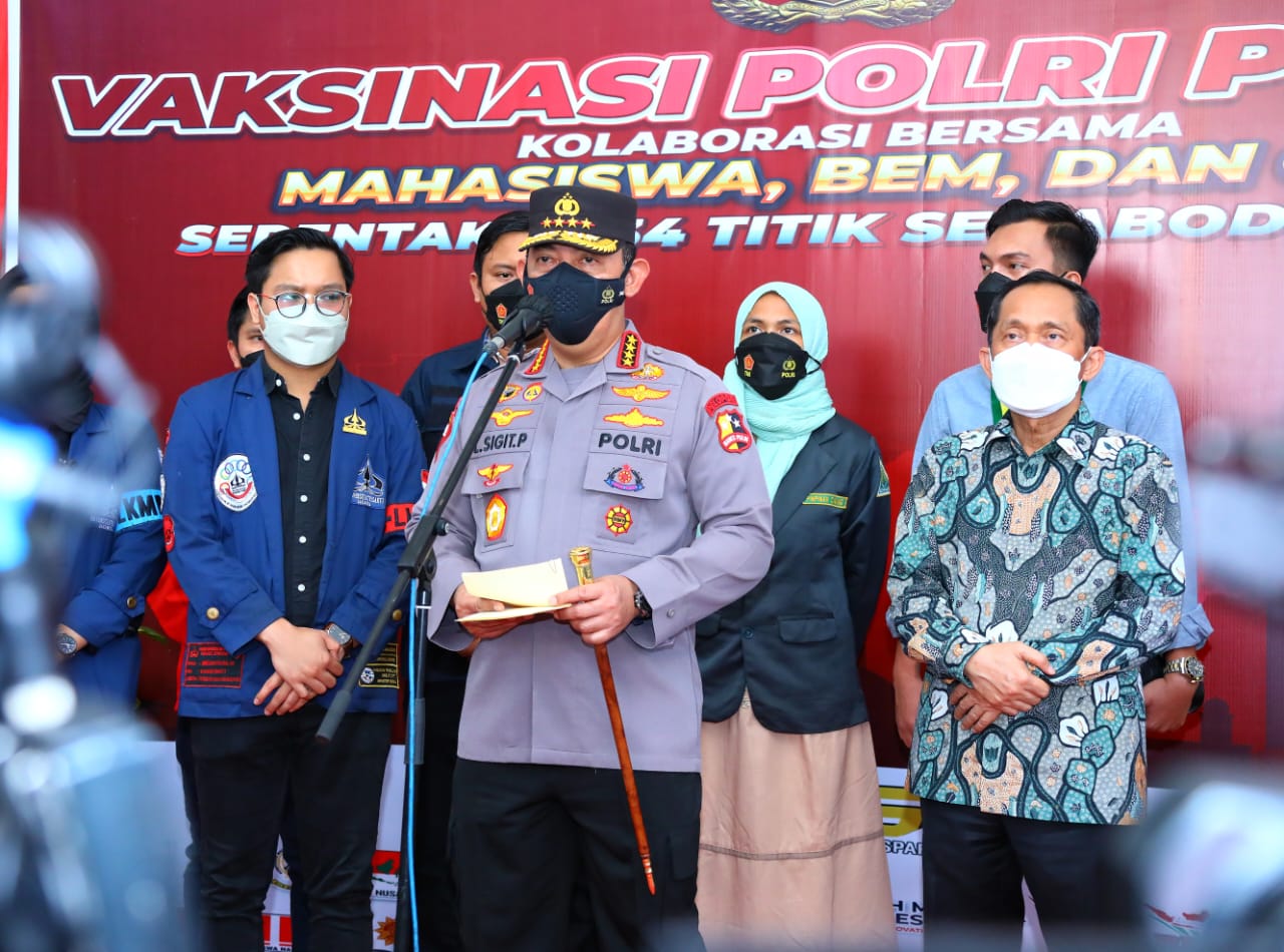 Jakarta -akuratmedianews.com- Kapolri Jenderal Listyo Sigit Prabowo meninjau secara langsung kegiatan akselerasi vaksinasi yang diselenggarakan bersama dengan elemen mahasiswa, BEM dan Organisasi Kepemudaan (OKP) di Gelanggang Olahraga Universitas Trisakti, Jakarta, Selasa (29/3/2022).