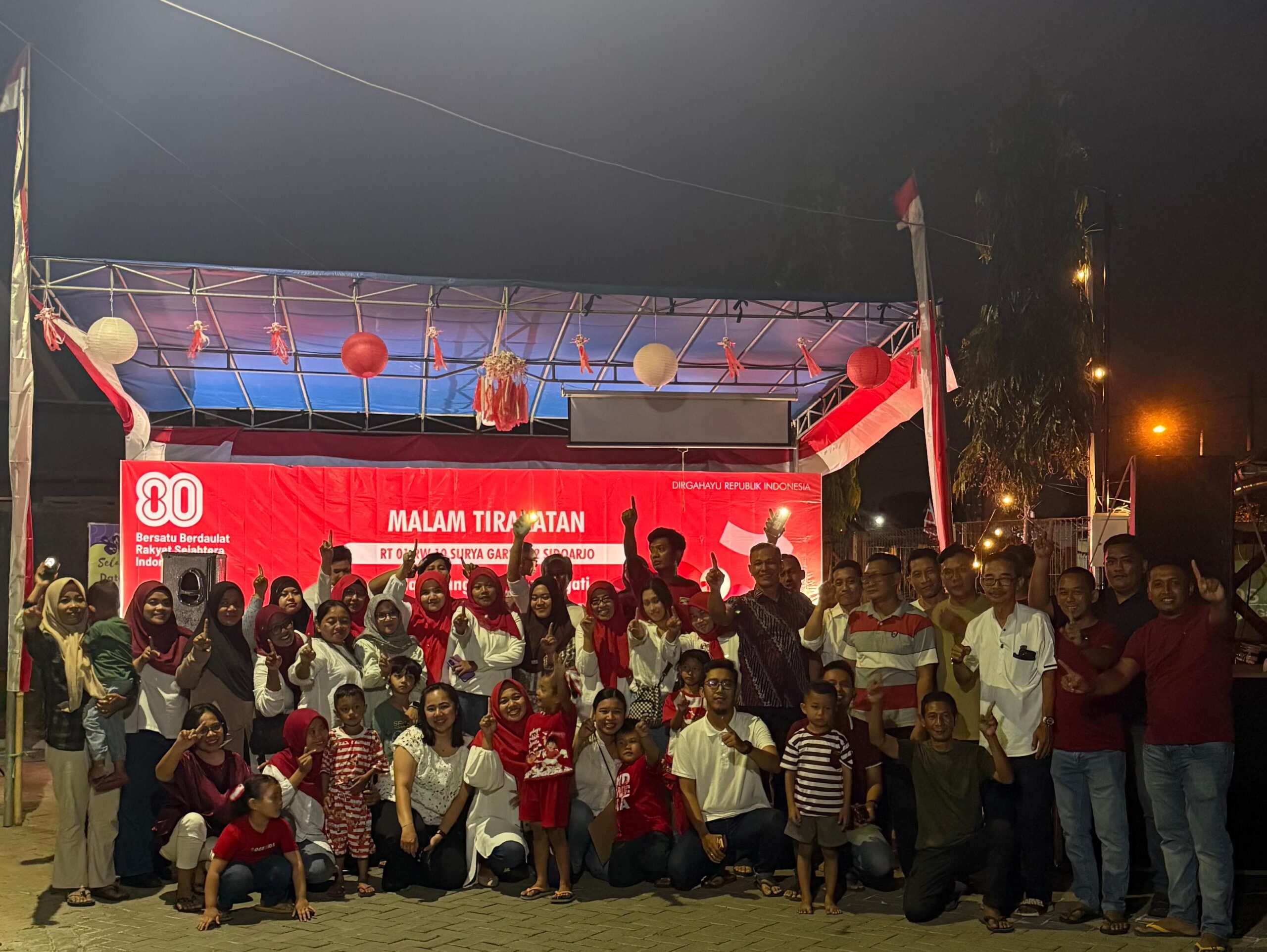 Akuratmedianews.com – RT 01 Perumahan Surya Garden 2 Sidoarjo menggelar malam tirakatan, dalam rangka memperingati Dirgahayu Republik Indonesia pada hari Sabtu (16/8/2025) malam.