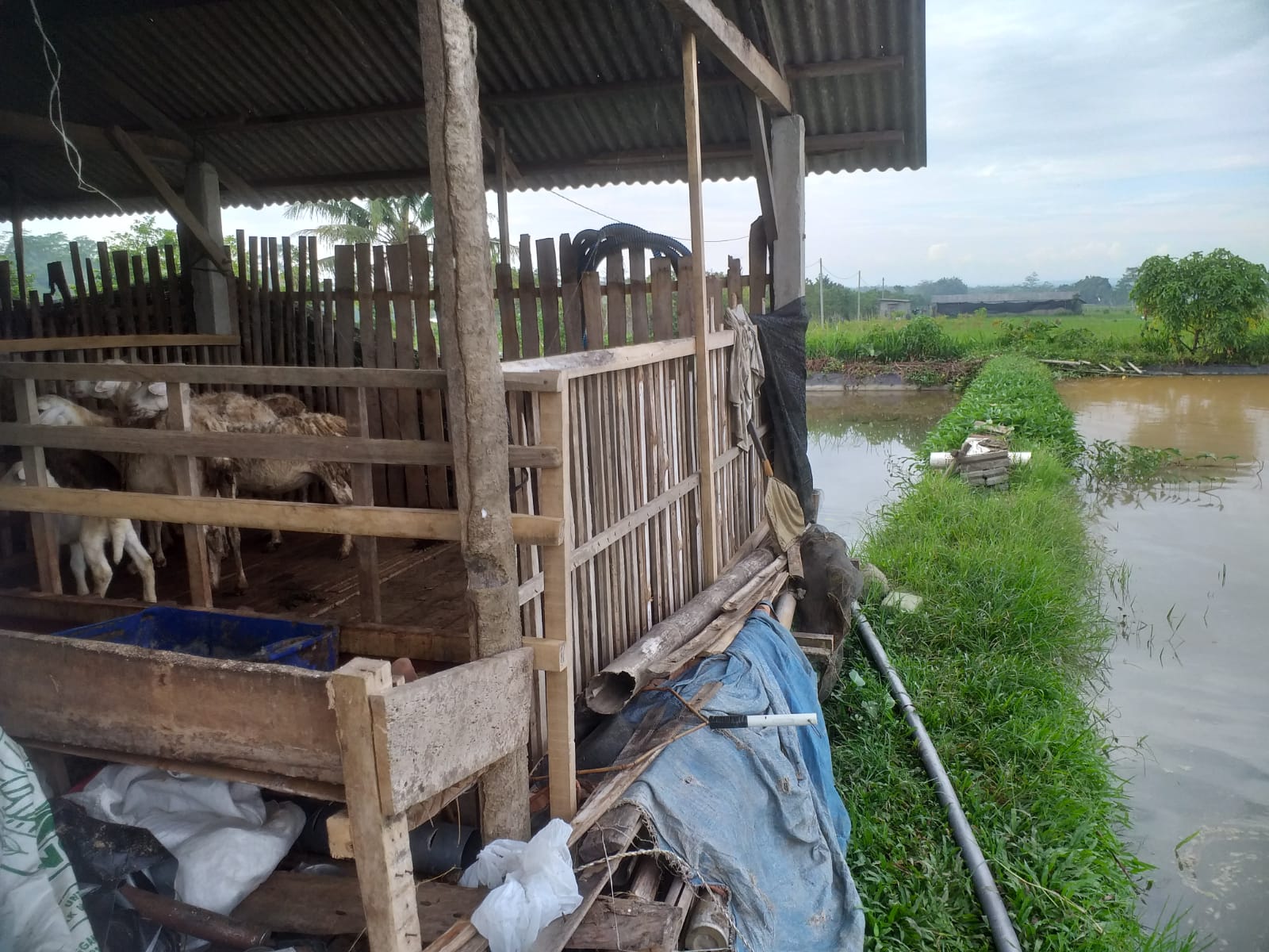 Dia menambahkan, saat dilakukan olah tempat kejadian perkara, kandang kambing terbuat dari kayu dan di ikat dengan tali plastik warna hitam. Kondisi kandang kambing berada di areal persawahan di kelilingi oleh kolam ikan lele dan ikan koi .