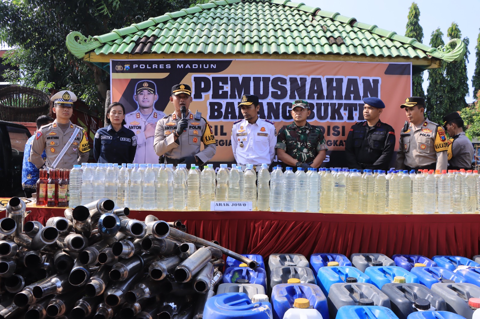 Kapolres Madiun, AKBP Anton Prasetyo menuturkan pemusnahan minuman keras dan knalpot brong merupakan upaya Polres Madiun dalam menjaga suasana Idul Fitri di wilayah Kabupaten Madiun agar selalu aman, nyaman dan sejuk bagi semua masyarakat.