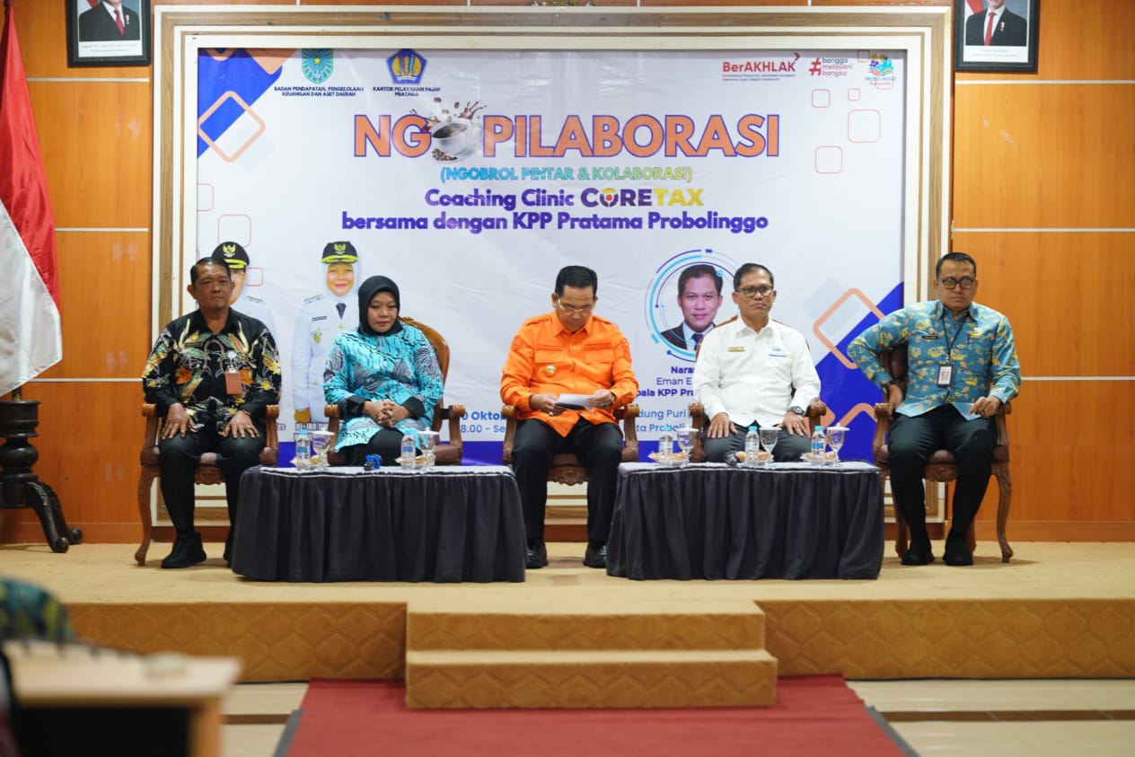Coaching Clinic Implementasi Sistem Core Tax di lingkungan Pemerintah Kota Probolinggo, diselenggarakan untuk memperkenalkan sistem inti administrasi perpajakan (Core Tax) yang modern dan terintegrasi, yang dirancang untuk mempermudah pelayanan, meningkatkan efisiensi proses bisnis, dan mendorong kepatuhan wajib pajak secara sukarela.
