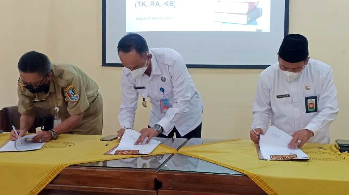 Kepastian anak didik bakal menerima materi tentang P4GN tersebut setelah Kakankemenag, Kepala BNNK dan Kepala Dinas Pendidikan Kabupaten Tuban menandatangani MoU tentang Kurikulum Terintegrasi P4GN untuk SD/MI dan pendidikan usia dini PAUD/TK di ruang rapat Dinas Pendidikan, Selasa (08/02/2022).