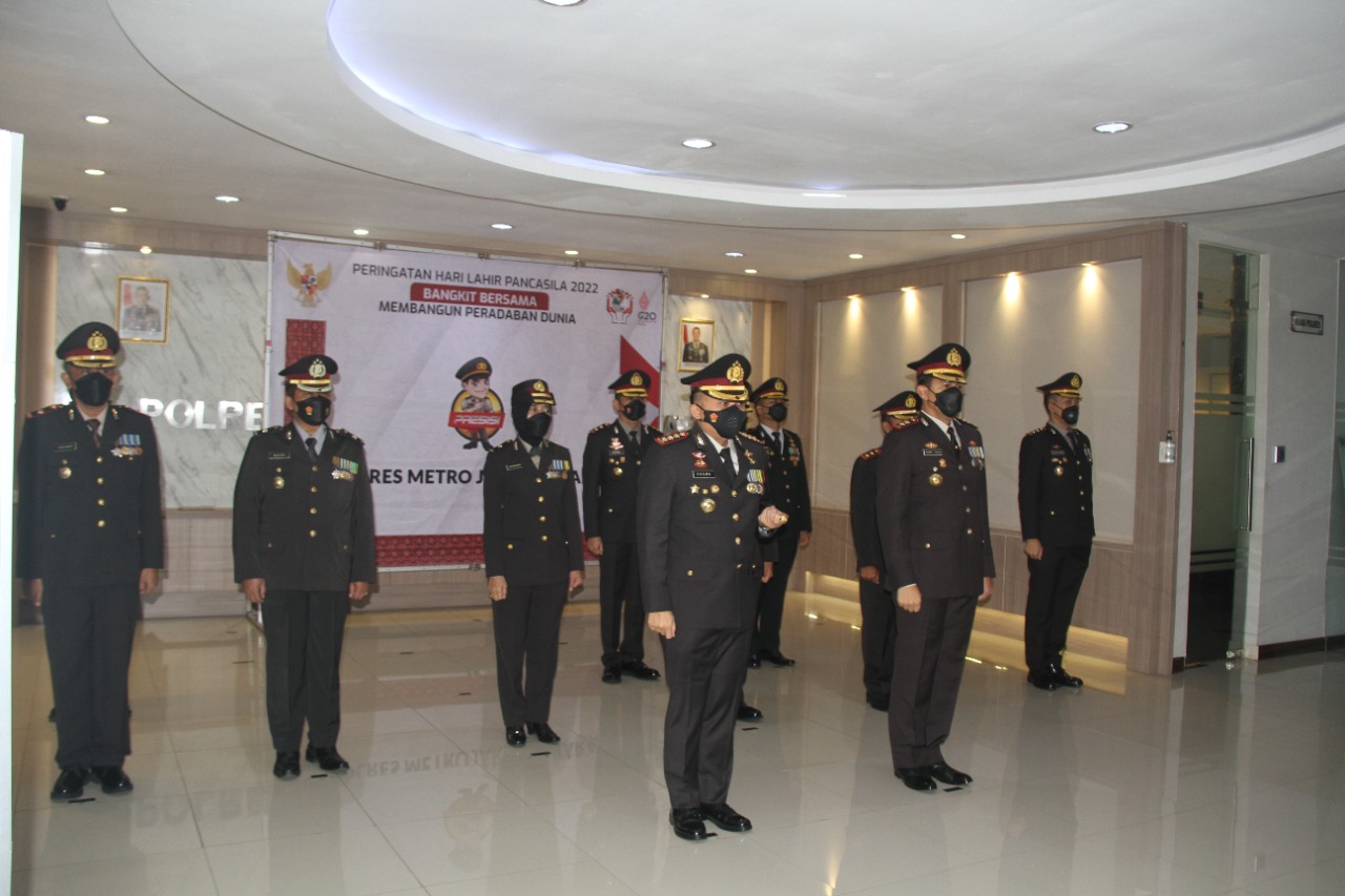 Kapolres Metro Jakarta Barat Kombes Pol Pasma Royce mengatakan, hari ini kami secara serentak melaksanakan upacara dalam rangka hari lahir pancasila secara daring