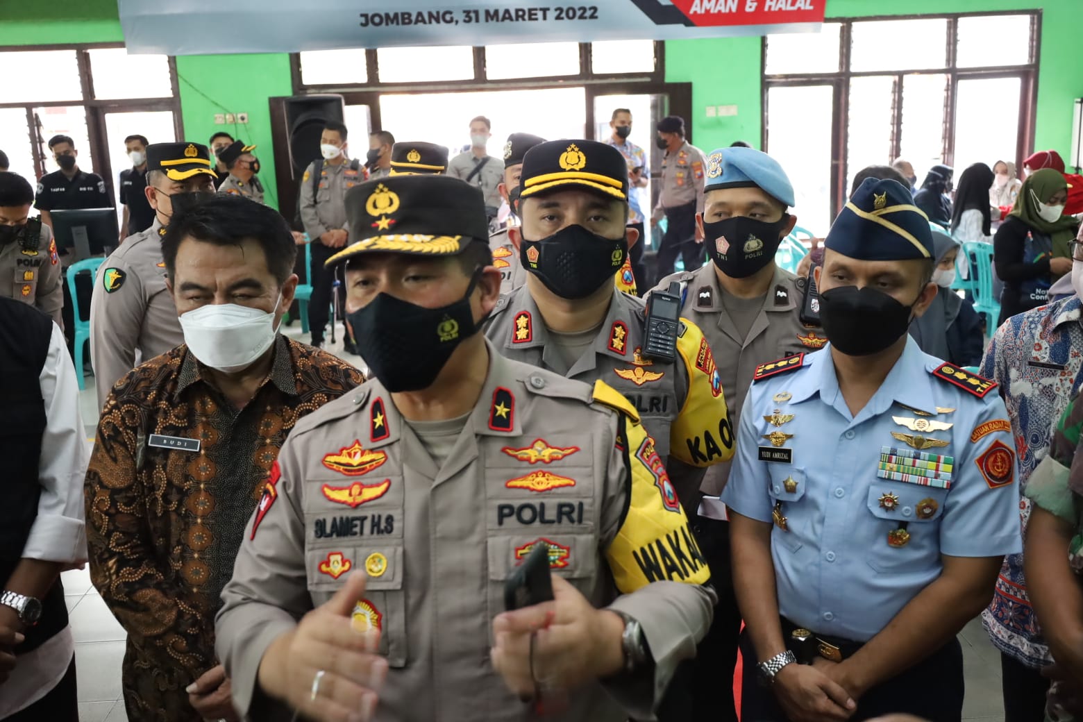 “Kegiatan vaksinasi ini diharapkan untuk melakukan percepatan, yaitu vaksin ketiga atau booster, sehingga diharapkan nanti minimal ada bekal, ada benteng bagi kita, demikian juga nanti lebaran,” jelasnya Wakapolda Jatim usai melakukan pengecekan vaksinasi.