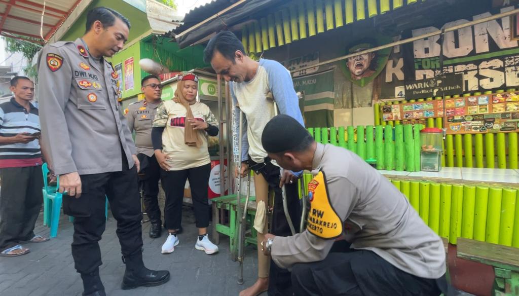 Surabaya – Akuratmedianews.com- Rudiono Arifin (42) warga Tambak Madu, Kelurahan Tambakrejo. Seorang penjual kopi akhirnya mendapatkan bantuan kaki palsu dari Polsek Simokerto berkat, Program baru yakni Polisi RW yang digagas oleh Polrestabes Surabaya.
