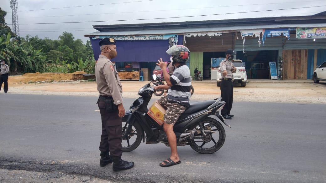 AkuratMediaNews.Com-INHU Polsek Seberida menggelar razia vaksinasi Covid-19 pada sejumlah kendaraan yang melintas di Jalan Lintas Timur Belilas pada senin (18/4/2022) siang