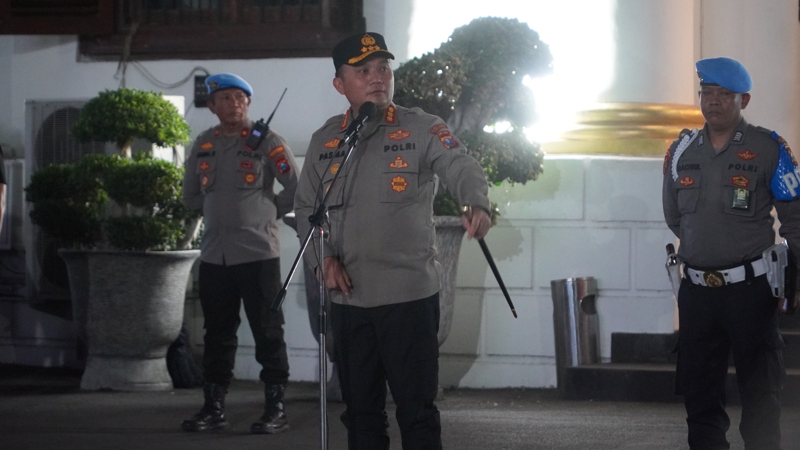 Kapolrestabes Surabaya Kombes Pol Pasma Royce saat memimpin apel di halaman Mapolrestabes mengatakan, pada kesempatan malam hari ini sebagai bukti persiapan kita untuk hadir di tengah masyarakat serta memastikan situasi kota Surabaya harus dalam keadaan aman dan kondusif di malam HUT Persebaya Surabaya.