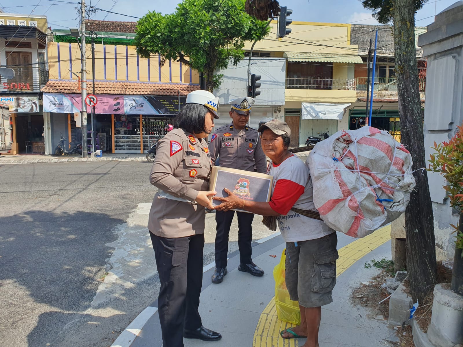 Kegiatan pembagian Bantuan Sosial kali ini di laksanakan oleh personil Satlantas Polres Magetan dan dipimpin langsung oleh Kasat Lantas Polres Magetan, AKP Trifoni Situmorang, SIK. Msi, dengan sasaran para kuli gendong juga tukang becak di sekitaran Pasar Baru dan simpang traffic light desa Bulu Sukomoro, Magetan,. Sabtu (3/6/2023).