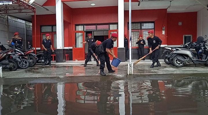 Sebelum melakukan Apel pagi, Satgas Cakra Buana dengan bergotong royong serta bekerja sama bersih – bersih halaman kantor DPC PDI Perjuangan Sidoarjo serta ruangan kantor dalam, dikarenakan kena luberan air akibat hujan semalaman dan mengakibatkan halaman tersebut menjadi kotor dari sampah jalan,sebabnya depan Kantor DPC PDI Perjuangan Sidoarjo jalannya terlalu rendah sehingga jalan tersebut kalau musim hujan selalu digenangi air akibat hujan deras.