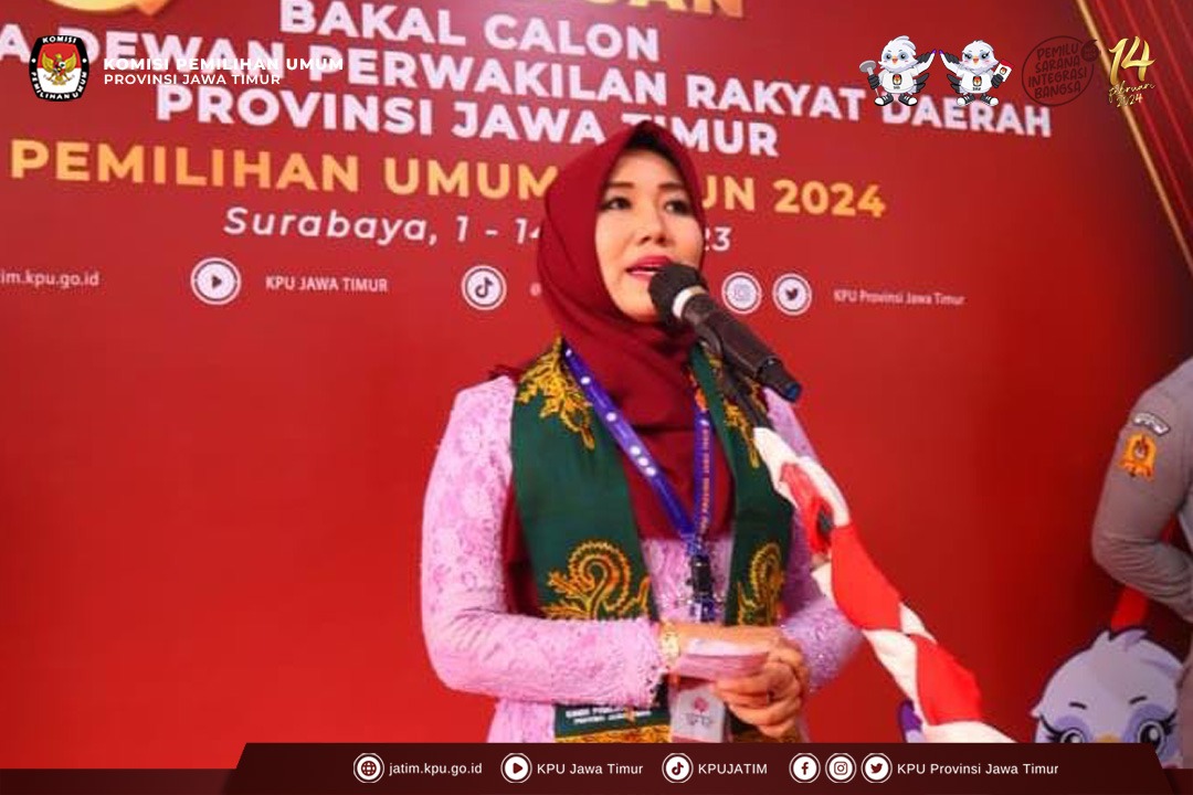 “Segenap keluarga besar, sahabat, dan kawan media Alhamdulillah dan terimakasih atas kebaikan panjenengan semua yang menyempatkan hadir. Bismillah, dengan ini saya dan orang-orang tercinta saya telah menyerahkan kelengkapan berkas sebagai calon ‘sah’ DPD RI Jawa Timur. Proses ini merupakan teladan saya pada sosok yang sangat kita semua kagumi, sosok Tokoh Perempuan Nasional bahkan termasuk muslimah terpopuler,” tegasnya.