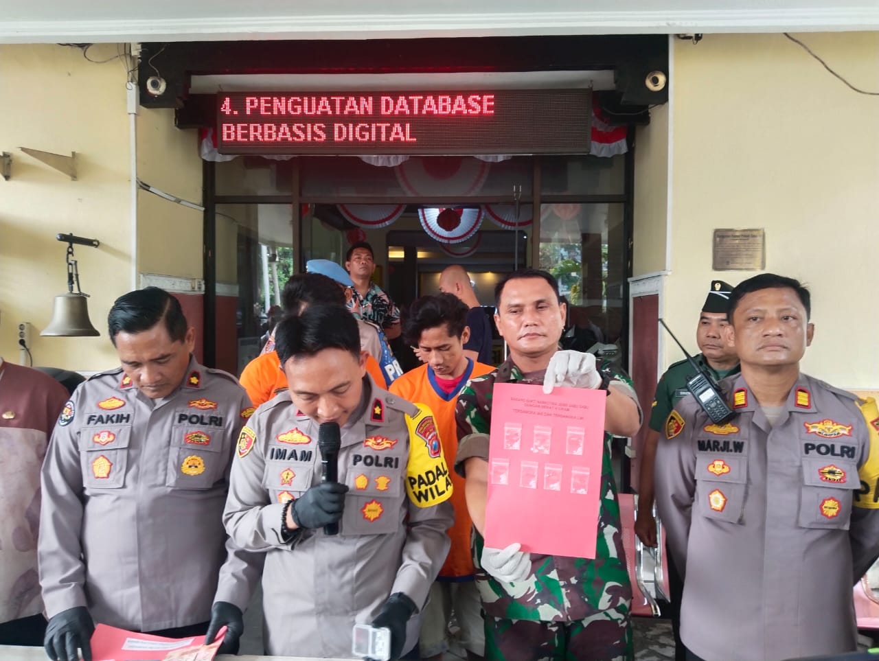 Kapolsek Tegal sari Kompol Imam Mustolih Yang Di dampingi Kanit Reskrim Polsek Tegal Sari AKP Marji wibowo memaparkan kedua Tersangka berinisial IAB ( 22 Tahun) Yang beralamat Jl Kupang Gunung Timur VI kota surabaya dan rekannya LWI (26 Tahun) asal Dsn Ngalaran RT 23 RW 22 DS Cakul kec dongko Kab Trenggalek yang saat ini indekos di jalan Pakis Wetan Gang IV No 19 .