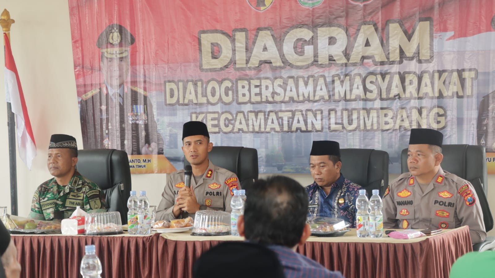 Hadir dalam kegiatan tersebut yakni Kapolres Pasuruan, PJU Polres Pasuruan, Kapolsek Lumbang, Sekcam Lumbang, Forkopimca Kecamatan Lumbang, dan Tokoh Agama serta Masyarakat Kecamatan Lumbang.